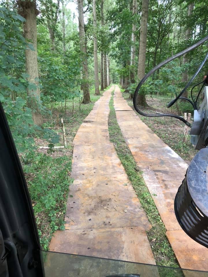 Ook knuppelpaden doorheen natte gebieden tot plaatsen van een veeraster of zitbanken, deze worden maximaal uit eigen geëxploiteerd hout gemaakt.  Daardoor maken we de economische/ ecologische cirkel rond.